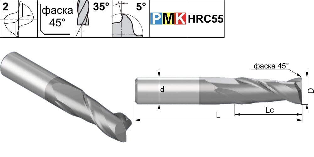 Рекомендуемые режимы резания для твердосплавных фрез серии PMK1, PMK2, PMK5, PMK6