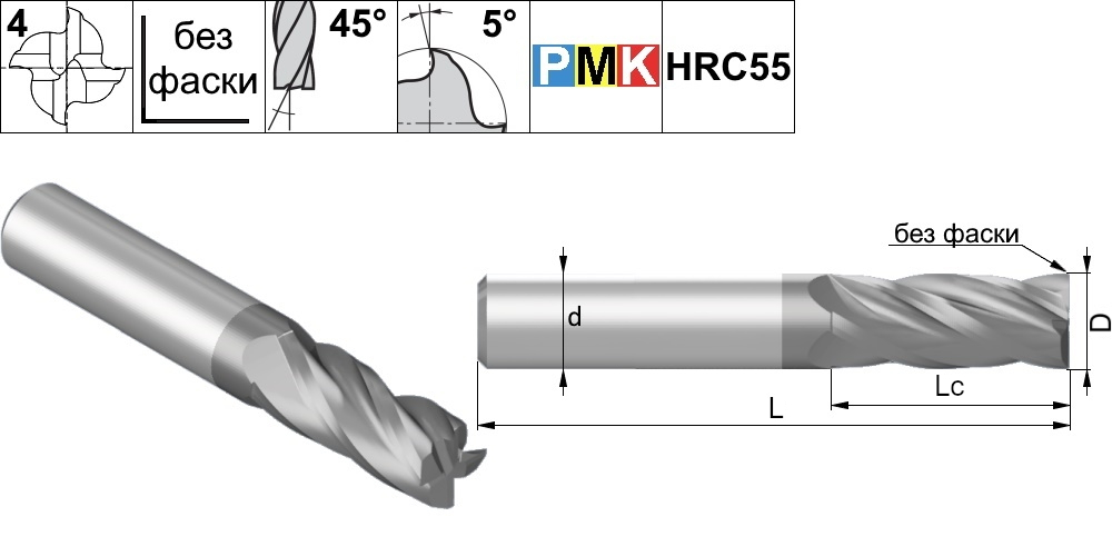 Рекомендуемые режимы резания для твердосплавных фрез серии PMK3, PMK4, PMK7, PMK8, PMK9, PMK10, PMK11, PMK60, PMK70