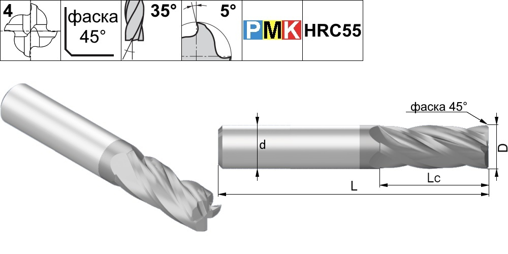 Рекомендуемые режимы резания для твердосплавных фрез серии PMK3, PMK4, PMK7, PMK8, PMK9, PMK10, PMK11, PMK60, PMK70