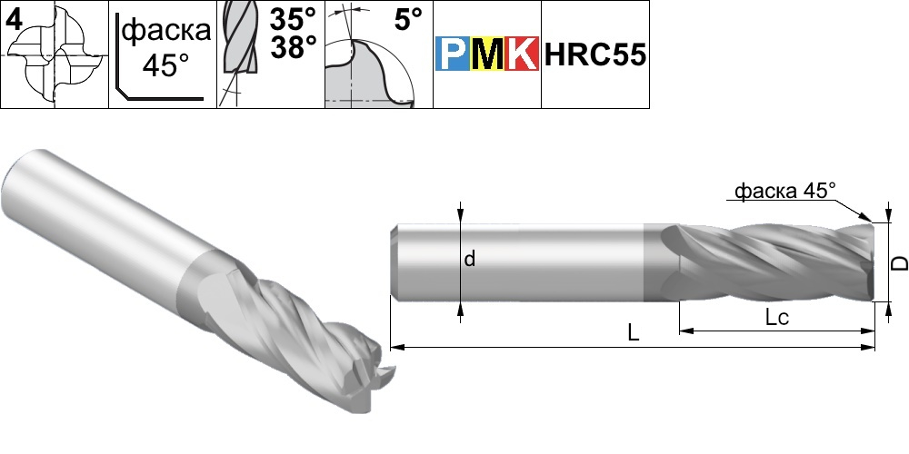 Рекомендуемые режимы резания для твердосплавных фрез серии PMK3, PMK4, PMK7, PMK8, PMK9, PMK10, PMK11, PMK60, PMK70