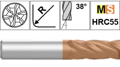 В линейке представлены 4-зубые твердосплавные фрезы в исполнении с радиусом при вершине от 0,3 до 6 мм, диаметром от 3 до 20 мм.