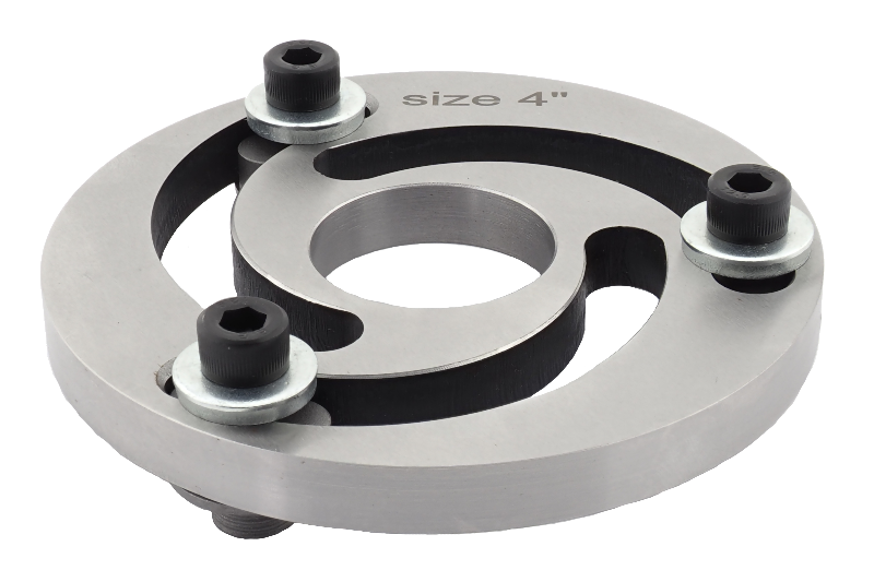 Расточные оправки JBF применяются в трехкулачковых токарных патронах. Оправка изготовлена в форме диска с отверстием в центре для доступа режущего инструмента и прорезями по окружности с регулируемыми втулками. Втулки болтовым соединением фиксируются в корпусе кулачка, образуя неподвижную конструкцию.